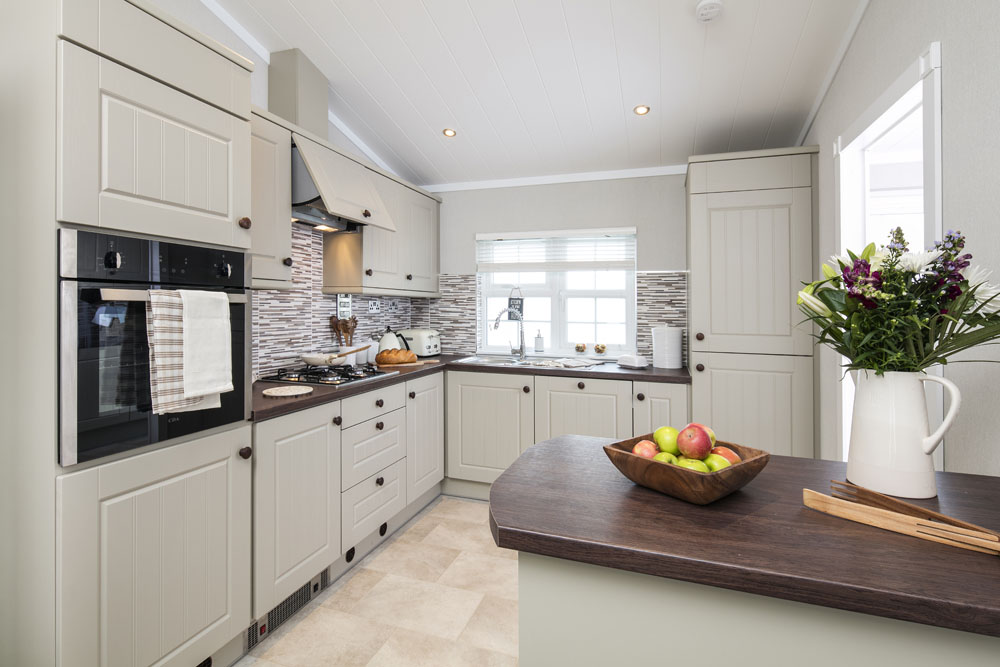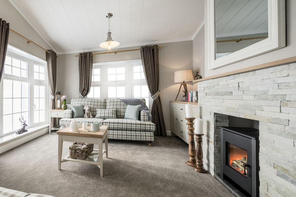 The first indications of the style and practicality of the lodge become apparent as soon as you enter the spacious entrance hall. Not only does it have a walk-in coats cupboard, but also a snug study, complete with a desk and brushed velvet office-style chair!